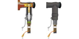 Elbow branch connector made of silicone rubber for connection up to 42 kV XLPE-cables to outercone bushing type C1 (630A) and C2 (1250A) according to EN 50180 and 50181